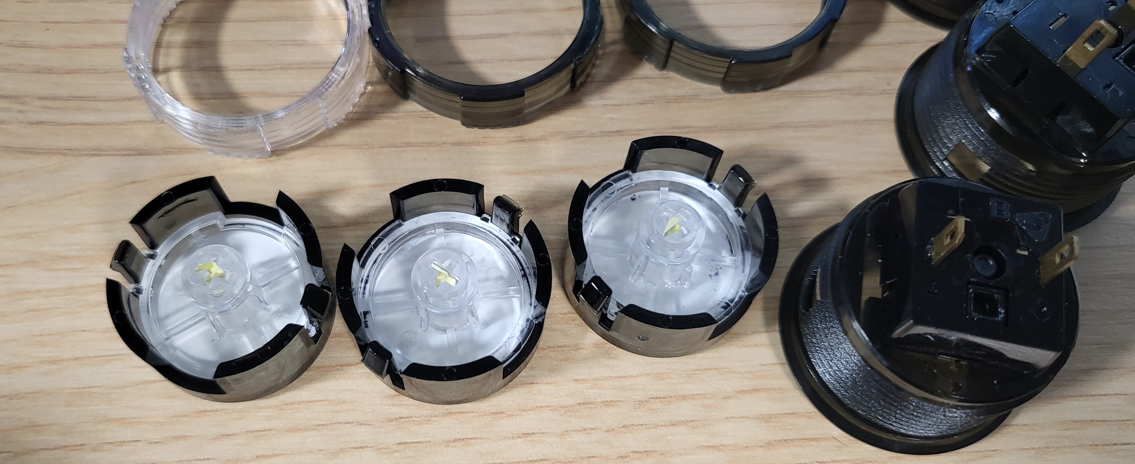2mm의 입력지점을 가진 스위치들은 와셔를 제거하여 장착시 버튼 입력이 인식되지 않았습니다.