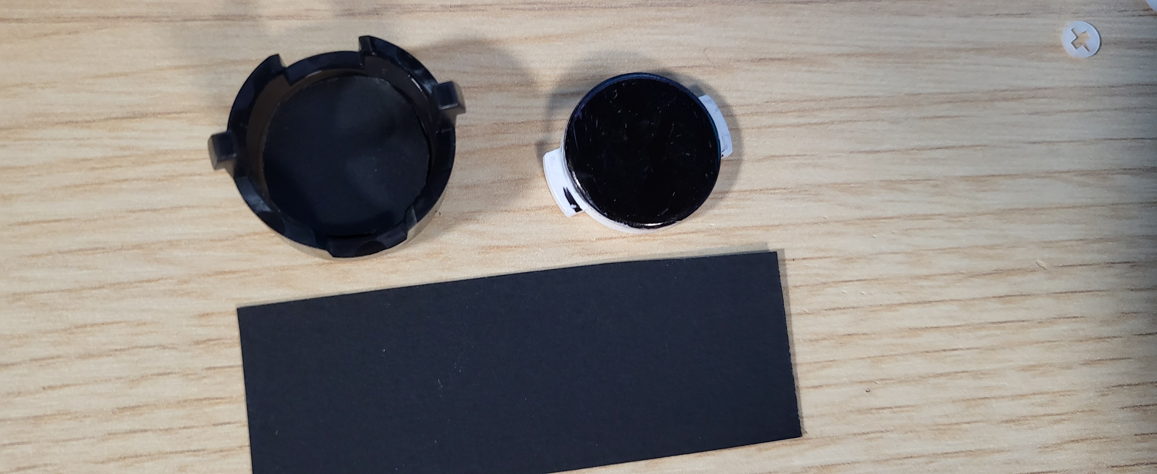 알루티모 클리어 버튼의 안쪽부품이 하얀색이라 검은색으로 칠하고 검은종이를 잘라서 넣었습니다.