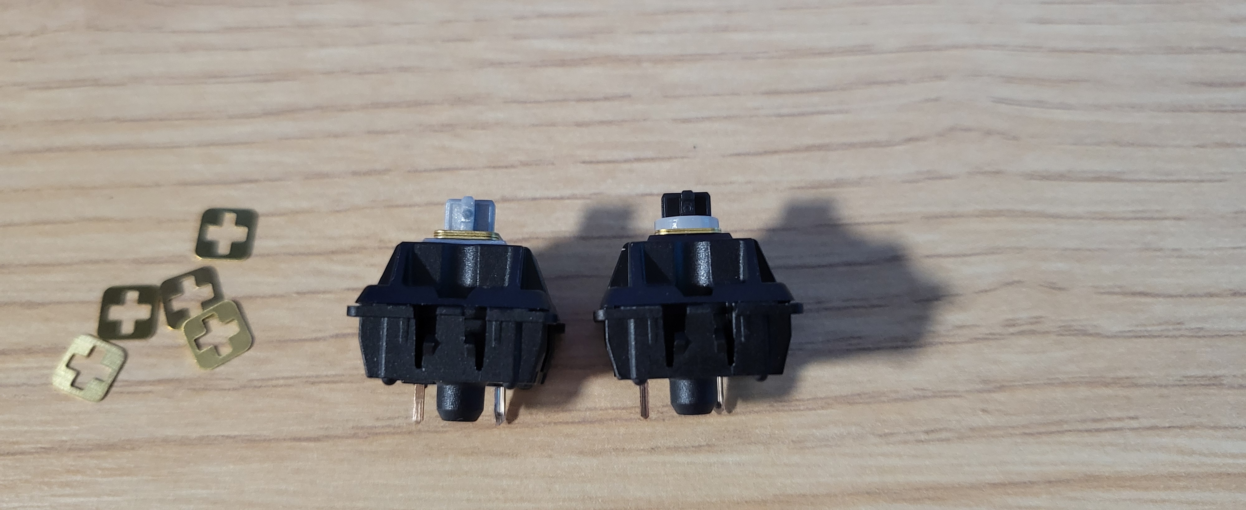 흑축 적축등 입력지점 2mm정도를 가지고 있는 체리 스위치는 1mm 플라스틱 와셔와 0.2mm 와셔를 같이 사용하면